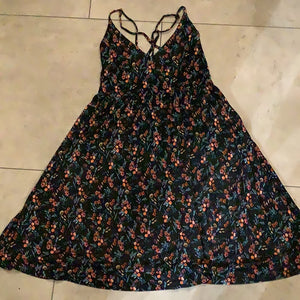 dress in knit rayon, empire waist, adjustable spaghetti straps, back strap detail, mid thigh length