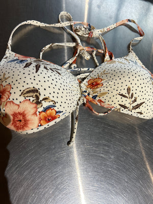 Adjustable triangle, modded heart cups adjustable lace front, tie neck and back