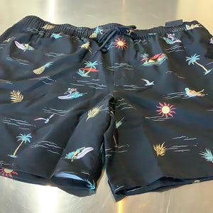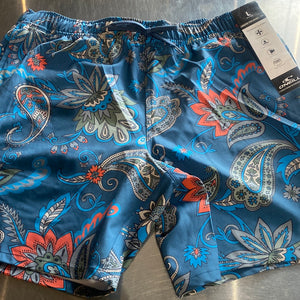 17 inch volley with full elastic waist , above knee, hyper dry, 4 way stretch, with draw cord