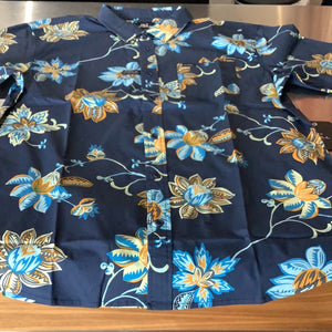 Full button short sleeve shirt 96% cotton, 4% spandex. Machine was in cold water